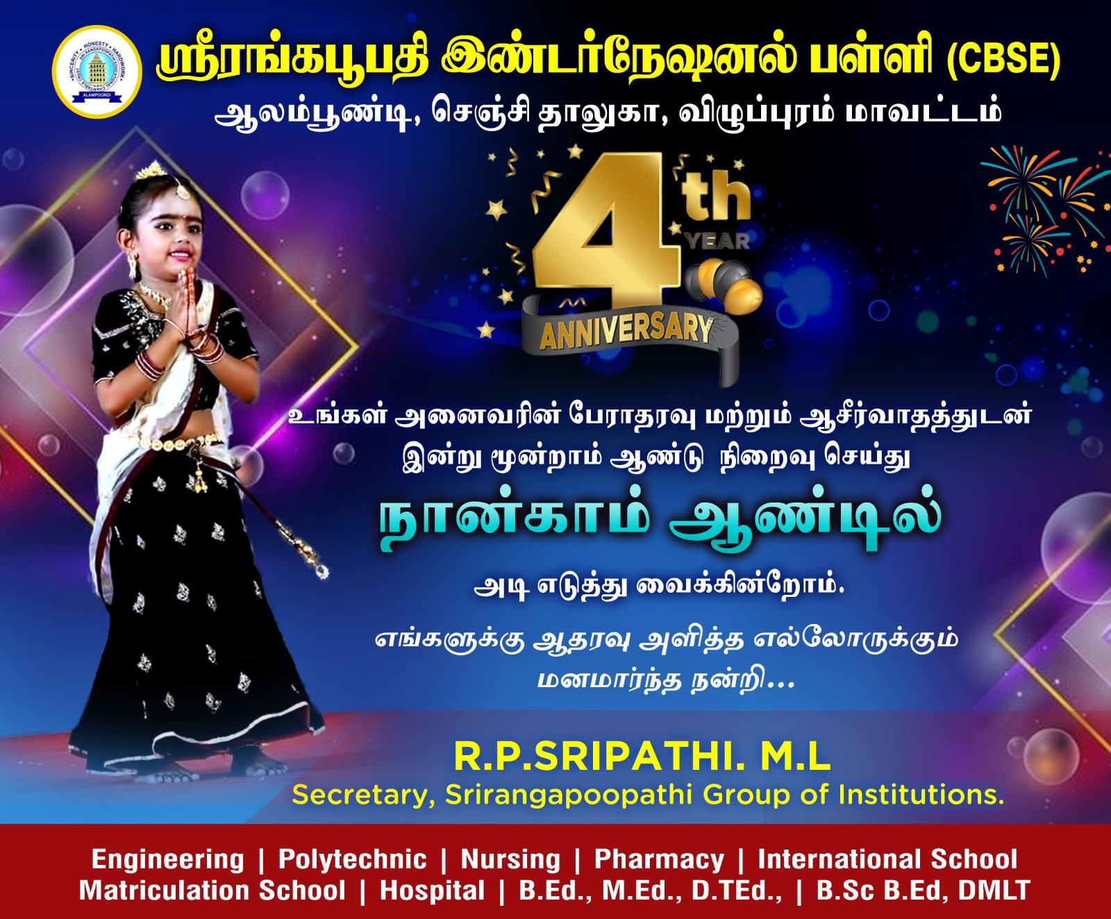 Annual Day-2025 Award Ceremony Grand Parents Day Achievements Admission - 2025 Field Trip - 2024 Children's Day Celebration - 2024 Eco Club Independence Day Celebration - 2024 Students Election - 2024 Toys Day Celebration 4th Year Anniversary Annual Day - 2024 Annual Awards - 2024 Infrastructure Karthigai deepam celebration 2023 Gross motor activity for kg - 2023 Teachers Day Celebration 2023 Navaratri, Kolu and Viyadasami Celebration 2023 Splash - art competition - 2023 Diwali celebration - 2023 Teacher effectiveness enhancement program - 2023 Pot painting, diya decoration and lantern making competition - 2023 Rhymes Competition for KG - 2023 CCA Class - 2023 Sports Day - 2023 Independance Day - 2023 Annual Day Celebration - 2023 Montessori graduation day - 2023 Green day - 2023 School reopening ceremony - 2023 Colouring competition - 2023 Fancy dress competition - 2023 Fireless cooking competition - 2023 Best out of waste - 2023 Vanmahotsav celebration - 2023 School leader election - 2023 Kamarajar ayya birthday celebration and competition - 2023